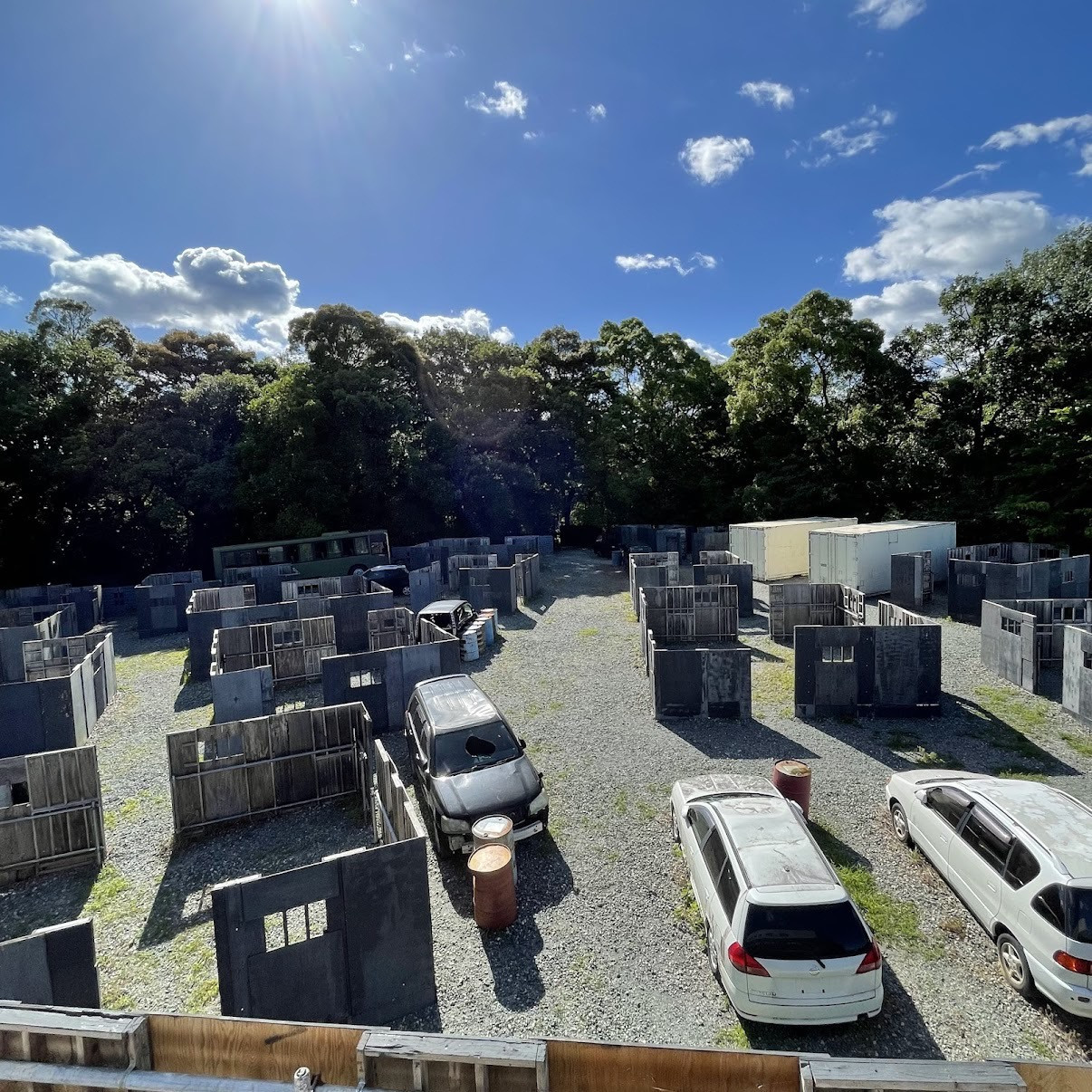 市街地と森林を融合させた複合フィールドです。車両やバスのバリケート、建物を模したオブジェクト、沼手エリアなど多彩な要素を組み合わせたフィールドとなっております。視界を遮る障害物や自然地形をどう生かすかで勝敗が変わるため戦略性と臨場感の両方を楽しめる人気のフィールドです。