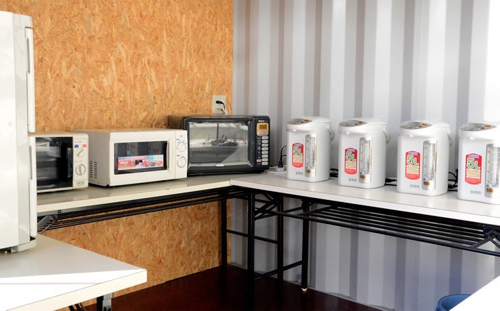 電子レンジ・マガジンウォーマー・給湯ポット・無料ロッカー・コンセントを設備しています。貴重品の保管に加え充電器を持参すればスマホやバッテリーの充電も可能です。